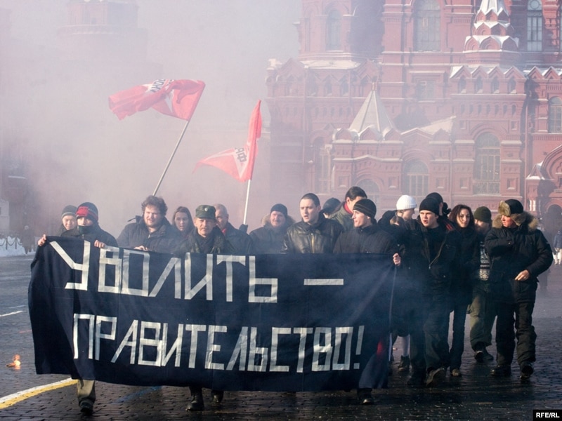 Мероприятие, главным организатором которого выступил входящий в "Левый фронт" "Авангард коммунистической молодежи" (АКМ), готовилось в глубокой тайне. Полтора десятка манифестантов конспиративно подтянулись к главной площади страны, у ГУМа объединились в колонну и начали шествие. Но стоило им растянуть транспарант "Уволить – правительство" и поджечь дымовые шашки и фальш-фаеры, как подоспели несколько милиционеров и молодых людей в штатском – предположительно, сотрудники службы охраны Кремля.