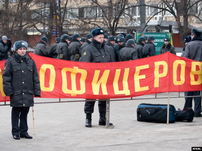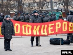 К месту проведения митинга Союза офицеров в Новопушкинском сквере - только через строгий досмотр.