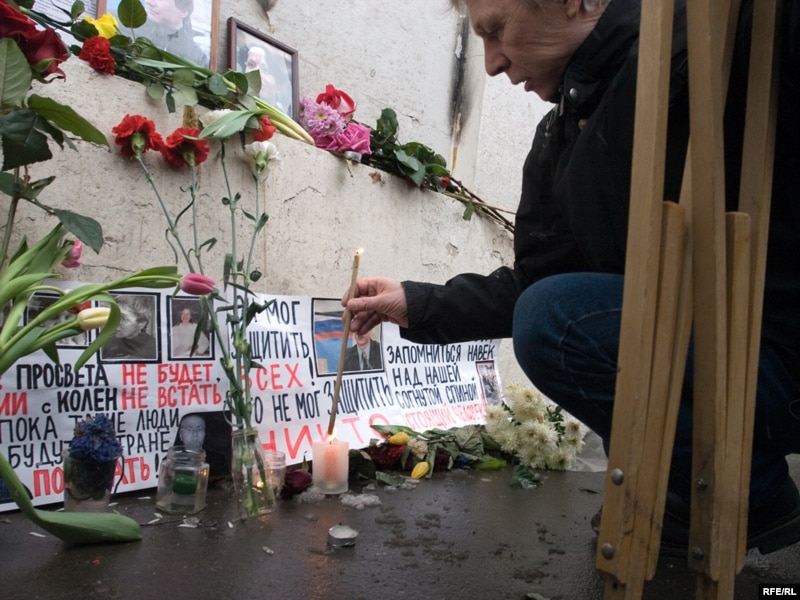 Надежда есть, что найдут хотя бы исполнителей, но слабая, потому что, на мой взгляд, очевидна причина этих выстрелов. И реакция наших властей, мягко говоря, запоздалая, неохотная. Я имею в виду реакцию президента Медведева, вызвавшую у меня просто чувство стыда. Да и вообще, активность милиции проявляется не в деле поиска убийц, а в вопросе ликвидации цветов на месте гибели и срыва плакатов. Буквально через несколько дней после смерти Стаса и Насти, когда мы тут собрались, было море цветов. Когда все люди разошлись, подошел подполковник, местный начальник милиции, начал срывать фотографии погибших, сгребать цветы, смахивать рукой с парапетика поминальные свечи, велел дворникам все это убрать, кричал нам: "Сейчас вас всех задержат здесь за осквернение памятника!", - говорят, что тут памятник архитектуры. Нам с трудом буквально физическим противостоянием, своими телами удалось все это отвоевать.
