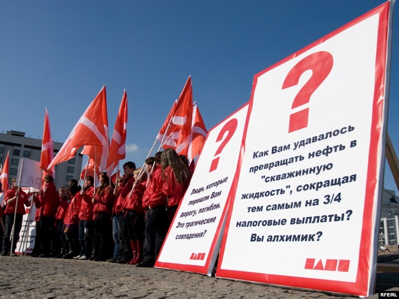 "Наши" проводят очередную акцию, посвященную ЮКОСу. На этот раз санкционированную