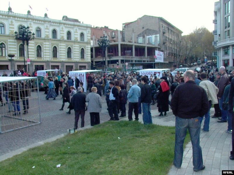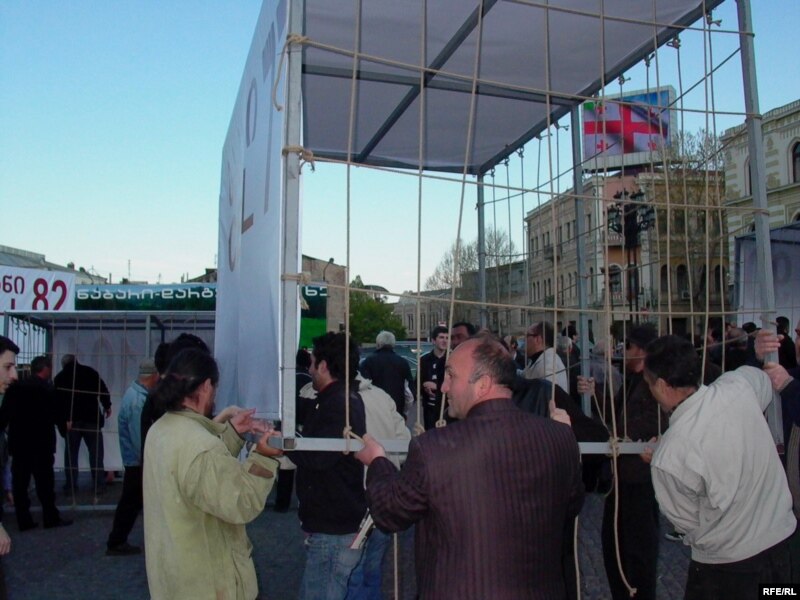 В центре Тбилиси, где проходит многодневная акция оппозиции, требующей отставки президента, построен городок из палаток и символических клеток. По словам бывшего кандидата в президенты Левана Гачечиладзе, оппозиция помешает Михаилу Саакашвили свободно передвигаться по городу и, в конце концов, он будет вынужден либо применить силу, либо подать в отставку.
