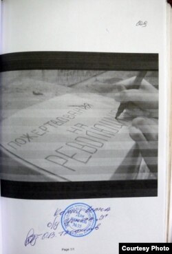 - Выставку я сделал буквально в течение недели после того, как вышел из СИЗО. Там было выставлено порядка 40 или 50 листов. Это материалы, которые вообще никакого отношения не имеют к статье 228-й - хранение наркотиков. Зато там присутствуют распечатки сайта моей артгруппы "Бабушка после похорон", распечатки комментариев с сайта. Наиболее "экстремистские фразы" сотрудниками центра на этих распечатках выделены зеленым маркером. Мы просто хотели показать пришедшим на выставку, что же заинтересовало этого сотрудника центра "Э", который все это выделил, поставил печать и подпись, и чем он пытается доказать мою виновность в хранении наркотиков.