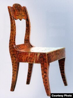 Дмитрий Журавлев – совладелец упомянутого Мариной Лошак антикварного салона "Русская усадьба". Самый ранний предмет выставки из этого собрания - полукруглый, выдолбленный из цельного дерева стул XVII века. Это кресло из Великого Устюга.