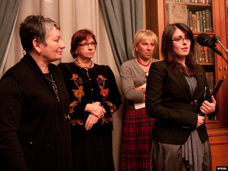 Вручение литературной премии Михаилу Ходорковскому. Слева направо: Людмила Улицкая, Наталья Иванова, Елена Лукьянова и дочь Михаила Ходорковского Анастасия