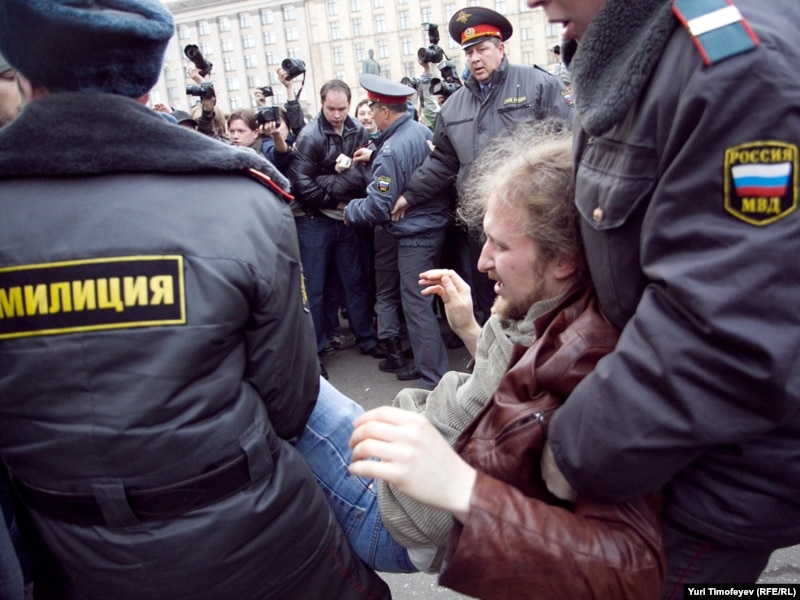 Задержание участников акции за свободу собраний на Триумфальной площади в Москве