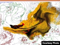 Извержение вулкана в Исландии. Схема, выполненная на основании спутникового снимка, распространена Норвежским метеорологическим институтом