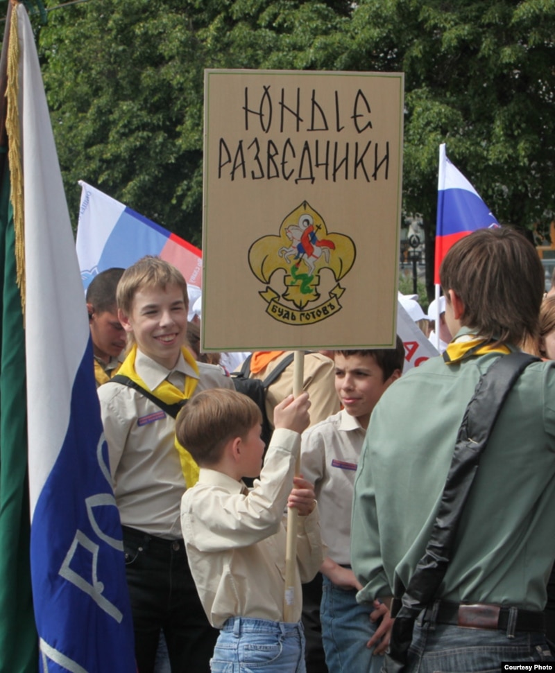 Наверное, если собрать все воображение, все-таки можно как-то объяснить, какое отношение вся эта общественность имеет к Святым. Но вот хватит ли фантазии объяснить участие в крестном ходе представителей "Юных разведчиков"? Не уверен!