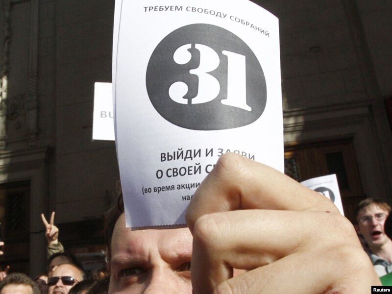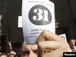 В центре Петербурга также прошла акция в защиту 31-й статьи Конституции о праве свободно собираться для выражения своего мнения. Об этом - корреспондент Радио Свобода Татьяна Вольтская: