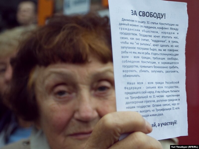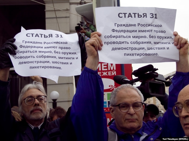 Об акции "Стратегии-31" на Триумфальной площади Москвы обозревателю радио Свобода Андрею Шарому рассказал очевидец событий – российский кинорежиссер Андрей Некрасов, который проживает в Западной Европе. Он известен серией документальных фильмов о роли специальных служб в современной России, вызвавших негодование Кремля.