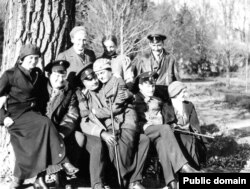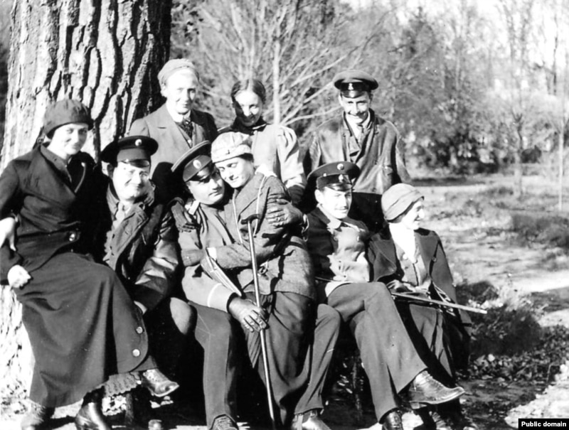 Борщень. Осень 1915 г. Стоят: Нина Васильевна Евреинова (урожденная . Сабашникова), Елена Романова, Сергей Жекулин; Сидят: Кира Евреинова ( ур. Васианова) и Владимир Евреинов, Дмитрий Евреинов и Ольга Евреинова( ур. Поцелуева) , Борис Евреинов и и Наталья Евреинова ( ур. Жекулина) .