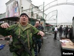 Сотрудник одной из силовых структур на месте взрыва на центральном рынке Владикавказа, 9 сентября 2010
