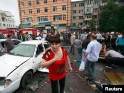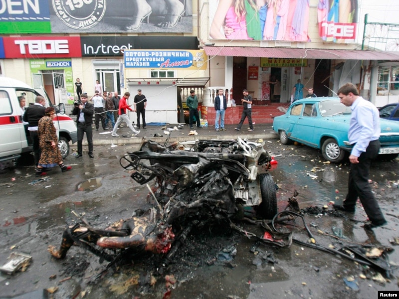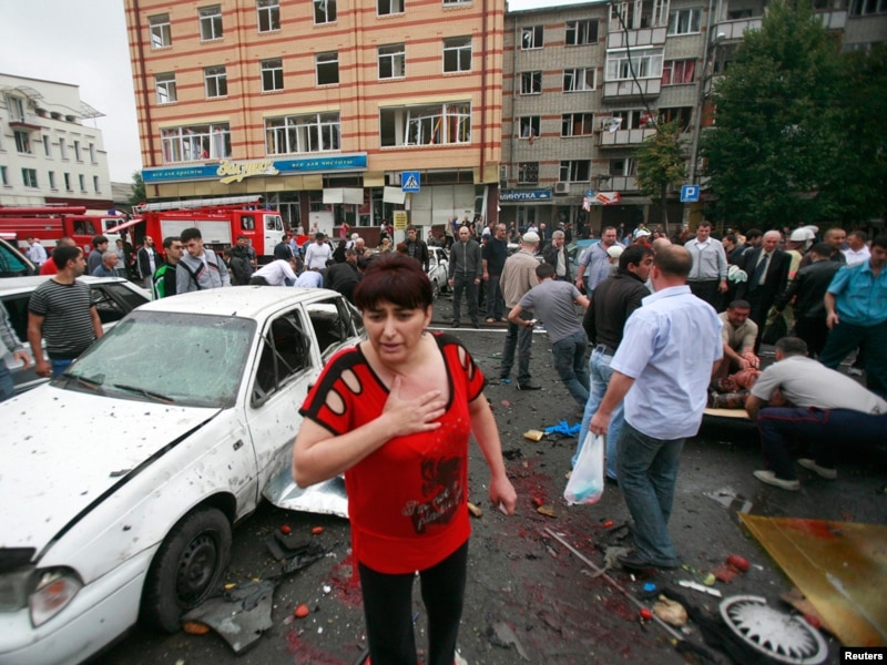 На месте взрыва во Владикавказе, 9 сентября 2010