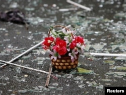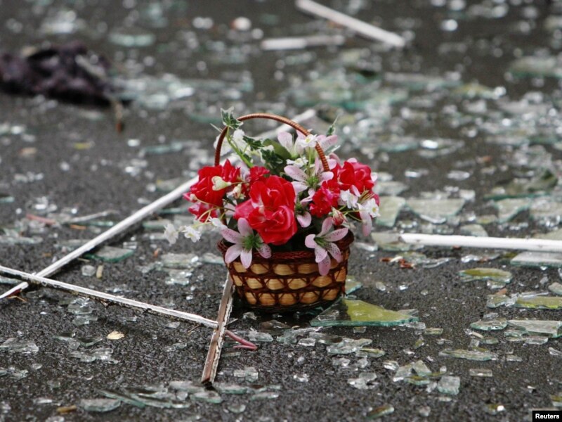 Цветы на месте теракта у центрального рынка Владикавказа, 10 сентября 2010
