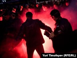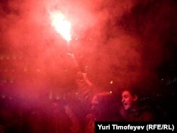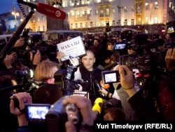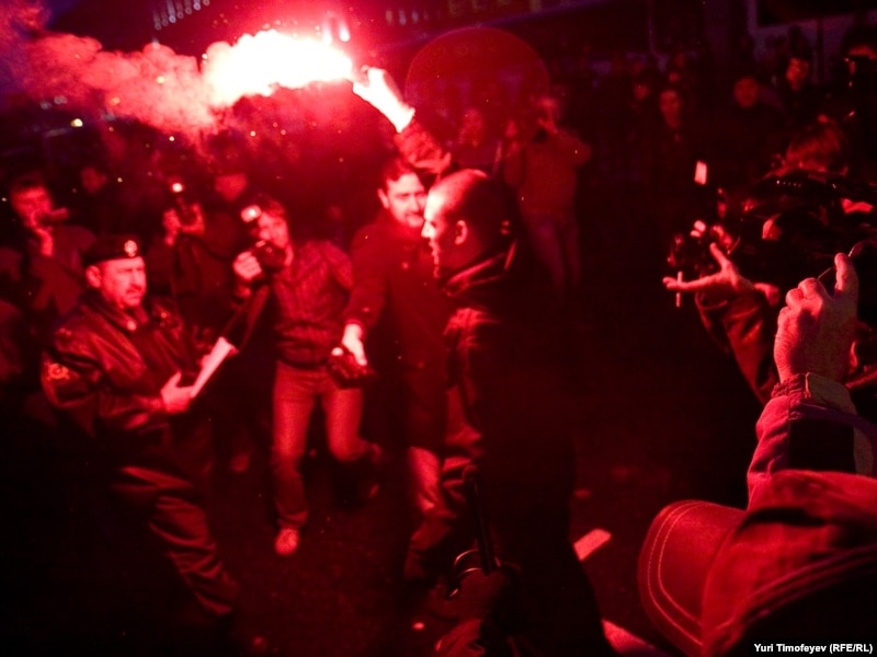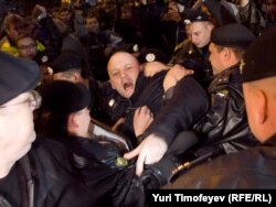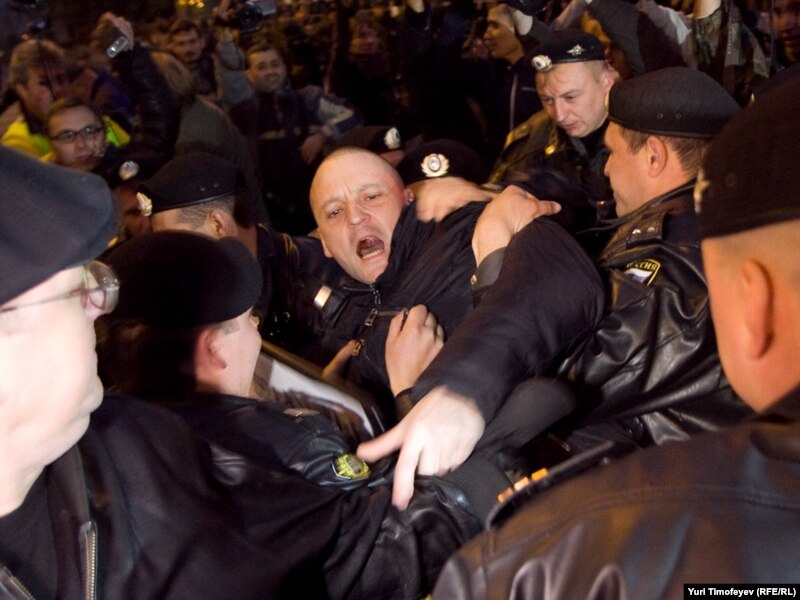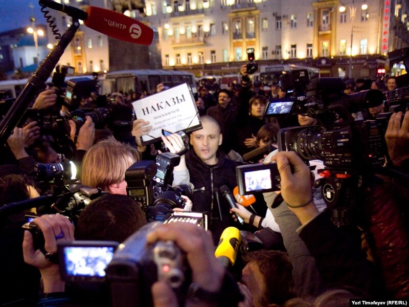 Лидер "Левого фронта" Сергей Удальцов успел поздравить собравшихся с "Освобождением от лужковской оккупации"