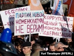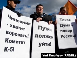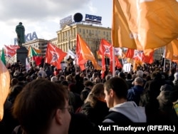 Несколько сот человек собрались 23 октября на митинг "Комитета пяти требований" на Пушкинской площади в Москве. Акция проходила под лозунгом "Путина в отставку", и она была разрешена мэрией столицы.