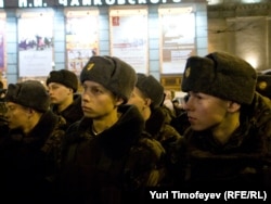Милиция через мегафоны призывала выходящих из метро "Маяковская" людей не задерживаться и проходить на площадку у гостиницы "Пекин", где началась согласованная с властями акция, организатором которой выступила глава Московской Хельсинкской группы Людмила Алексеева.