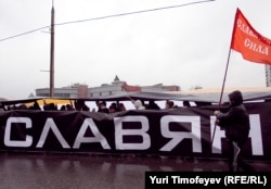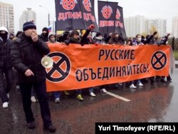 Акция националистов "Русский марш" состоялась в День народного единства в московском районе Люблино. Около 5 тысяч человек прошли по улице Перерва, скандируя националистические лозунги.