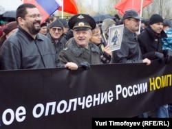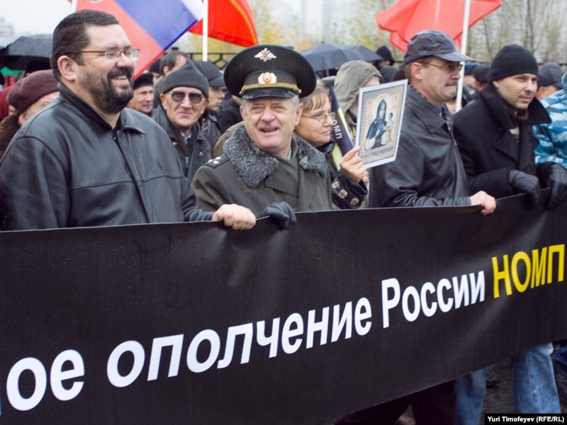 Дважды оправданный по обвинению в покушении на Анатолия Чубайса полковник Квачков возглавлял колонну Народного ополчения имени Минина и Пожарского