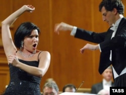 Соломон Волков: Долгое время на Западе считали, что русская школа пения дала только одного великого певца мирового масштаба, которого неизменно включали в списки самых знаменитых вокалистов всех времен и народов. Я говорю, конечно, о басе Федоре Шаляпине. Русских женщин в подобных списках, как правило, не было, хотя известны и исключения: назову Ирину Архипову, Галину Вишневскую и, скажем, Елену Образцову. И вдруг, словно по мановению волшебной палочки, на международном вокальном небосводе вспыхнул целый ряд русских певиц-суперзвезд. Скажем сразу, что без волшебной палочки здесь действительно не обошлось, и я даже могу сказать, кому она принадлежала - маэстро Валерию Гергиеву, руководителю Санкт-Петербургского Мариинского оперного театра. Это он ''вывел в люди'' множество имен, знакомых теперь любителям вокала во всем мире. Я не буду здесь увлекаться составлением полного списка, он оказался бы слишком длинным, а сосредоточусь на двух феноменальных дивах, как их любят именовать - сопрано Анне Нетребко и меццо-сопрано Ольге Бородиной. Популярнейшей Анне Нетребко 39 лет, родилась она в Краснодаре, но является выученицей петербургской вокальной школы. Вот вы, Саша, упоминали о том, что Водянова как бы Золушкой вспыхнула на небосклоне высокой моды, вот такой же Золушкой, согласно легенде, появилась и Нетребко. Есть очень популярная легенда, что она в Мариинском театре мыла полы. Я думаю, сначала это было частью некоего пиара, а потом Анне это дело не очень приглянулось и вся эта история с мытьем полов, когда ее заметили, как-то исчезла из обихода. Поэтому думаю, что это легенда, но красивая. А вот действительной сенсацией 1995 года стал дебют Нетребко в Сан- Франциско в феноменально трудной партии Людмилы в опере Глинки ''Руслан и Людмила'', которую подготовил с ней Гергиев. Роль Людмилы — капризной, кокетливой, ветреной и неотразимо обаятельной русской красавицы - создана большим ценителем женской красоты Баричем и эпикурейцем Глинкой как будто специально для Нетребко.