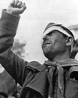 "Франко смотрит в полевой бинокль на Мадрид. Он отправит других генералов брать Мадрид, хотя никому об этом пока не говорит. Сам же пойдет в Толедо - освобождать Москардо в Альказаре".