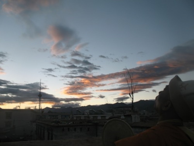 Итак, мы успешно пересекли границу в местечке, отличающемся от тибетской столицы всего лишь одной буквой – Кхаса. На протяжении всего трехдневного пути на автобусе до Лхасы мы не могли ступить шагу без нашего гида. Мы думали, что он – по совместительству сотрудник китайских спецслужб. Но то ли сыграла свою роль его принадлежность к тибетскому народу, то ли простая усталость и невнимательность – и он упустил тот ключевой момент, когда в Лхасе рано утром 31 мая мы надели-таки монашеские одежды и достали свои барабаны.