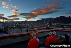 Мы готовились к худшему. Но… к вечеру гид отдал нам нашу визу и, заметно успокоившись, на следующий день отпустил с миром на поезд, который повез нас в остальной Китай. Мимо нас проносились красные флаги, которыми украшены улицы Лхасы к близящемуся празднованию "60-летия освобождения Тибета", а с нами в поезде сидели тихие улыбчивые тибетские монахини. Они ехали в китайский город Ченду на обучение в тибетском монастыре.