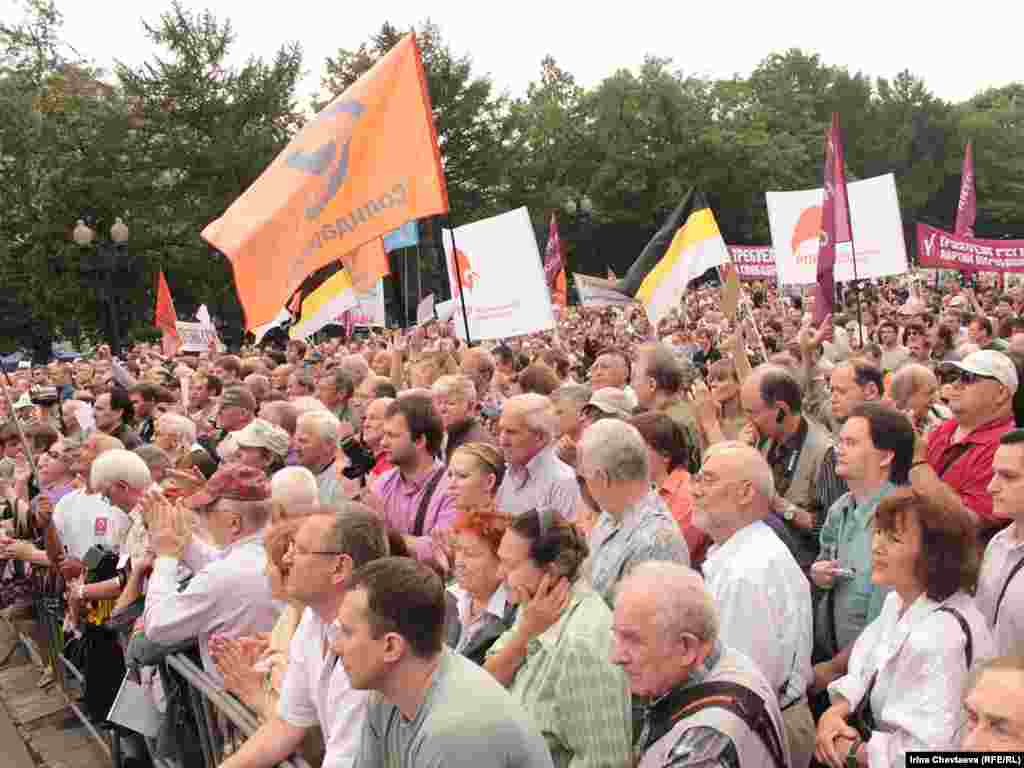 Участники митинга выразили протест против недавнего отказа Министерства юстиции в регистрации партии ПАРНАС, который фактически лишает ее возможности принять участие в декабрьских выборах в Госдуму. Лидеры партии считают отказ политически мотивированным.