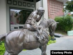 Владимир Абаринов: Лошадь изображена на гербах шести американских штатов, и на всех, кроме Невады, где мчится тройка диких мустангов – именно верховая, чистокровной английской породы. А из всех конных видов спорта самый популярный – конечно, скачки. Собственно, скачки – это больше, чем спорт. Для многих американцев это образ и смысл жизни, профессия, бизнес, а для еще большего числа – удовольствие. В местах, где выращивают и тренируют лошадей, даже время измеряют в скакунах и скачках. Говорят, например: ''Это было в том году, когда Экстерминатор выиграл Дерби''.