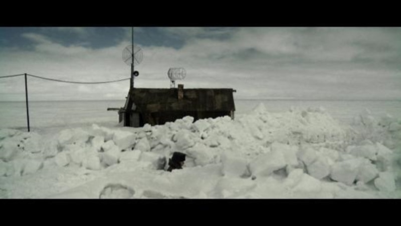 Дмитрий Волчек: Да, такой ритуальный мир – поклонение пограничному столбу с советским гербом, или празднование 9 мая с рукописным плакатом на стене и торжественным построением. Может быть, в какой-то большой военной части это и казалось бы нормальным, но когда все эти ритуалы исполняют шесть человек в маленьком домике среди льдов и снега…