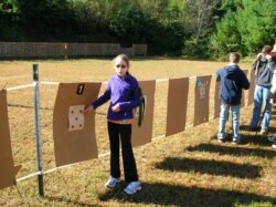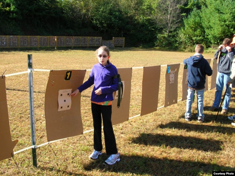 А это деликатный голосок малокалиберной винтовки. Здесь ее называют – 22-я, по калибру. Из нее палят на 50-метровом полигоне.