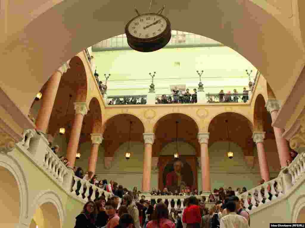 Russia--Visit of Russian President Dmitry Medvedev at the The Faculty of Journalism at Lomonosov Moscow State University, MSU, 20Oct2011