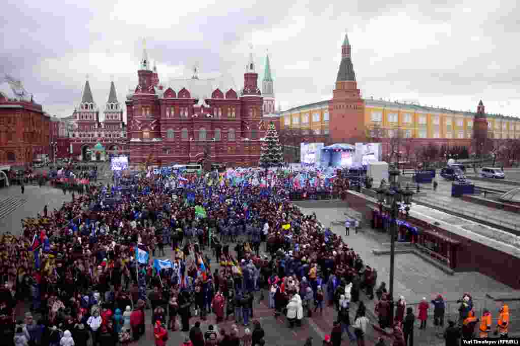 Сторонники Владимира Путина собрались на митинг в его поддержку на Манежной площади в Москве.