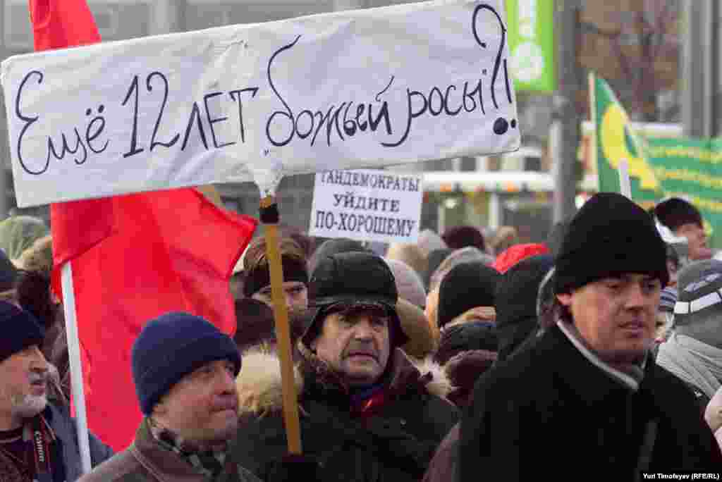 Russia -- Protesters gather with balloons and placards during a demonstration for fair elections in central Moscow, 04Feb2012