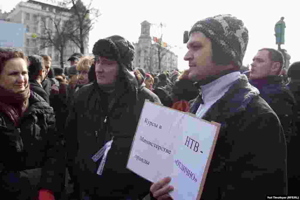 На Пушкинской площади в Москве 17 марта прошло мероприятие под лозунгами "Свободу политзаключенным" и "Долой НТВ!"