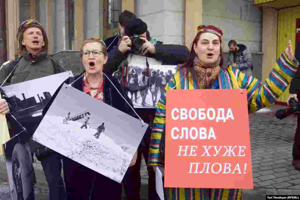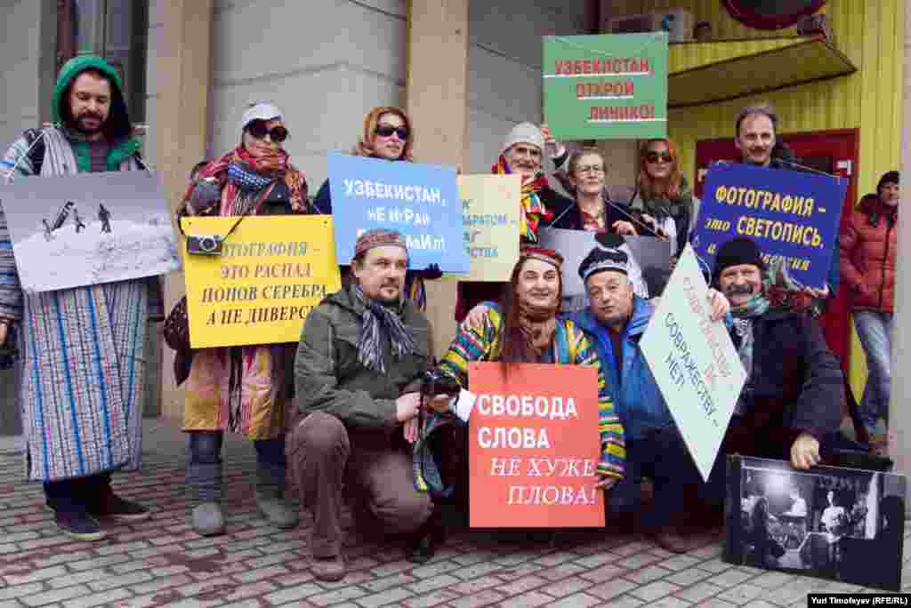 Московские журналисты и фотографы провели у посольства Узбекистана "плов-пикет" в защиту прав фотожурналистов.