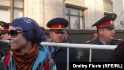 Корреспондент РС шел на Манежную вместе с одним из организаторов акции - журналистом Аркадием Бабченко. Группа из десяти человек двигалась пешком по Тверской улице в сторону Кремля.