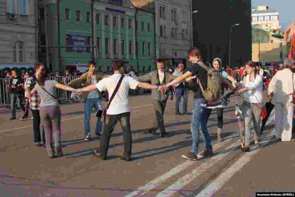 После неудавшегося митинга собравшиеся не уставали общаться с ОМОНом