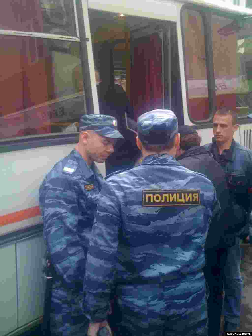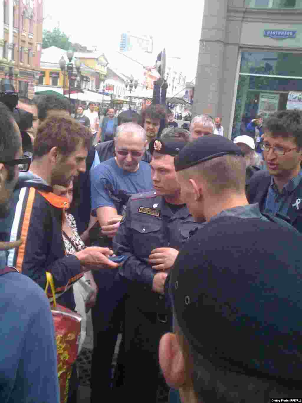 На Старом Арбате полиция забрала около 10 человек и увезла, остальных проверяют