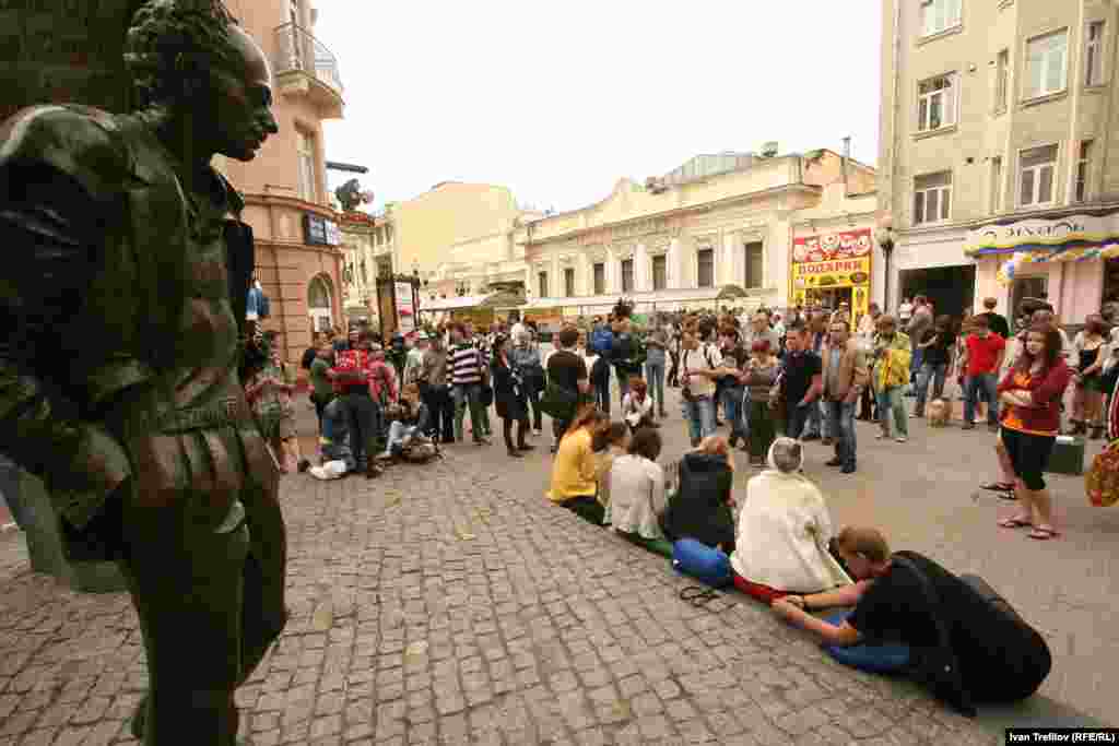 Активисты "Оккупай" - у памятника Окуджаве на Старом Арбате