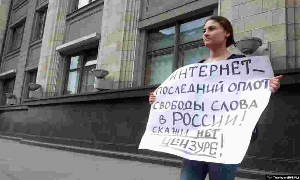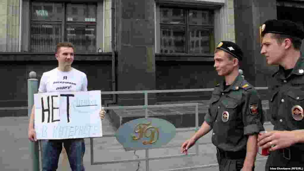 Несколько человек провели серию индивидуальных пикетов педед Госдумой РФ за два часа до 2-го чтениея проекта закона о поправках в федеральный закон "О защите детей от информации, причиняющей вред их здоровью и развитию". Эксперты считают, что таким образом в Интернете фактически может быть введена государственная цензура.