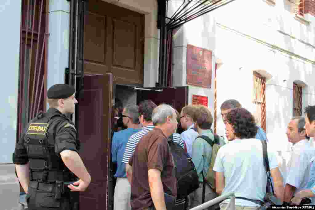 Утро 8 августа у Хамовнического суда. Не все журналисты попадут внутрь