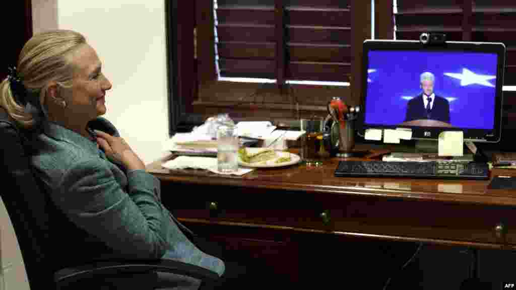 Выступление бывшего президента США Билла Клинтона - центральное событие второго дня съезда. Шарлотт, Северная Каролина, 5 сентября 2012 года.