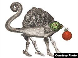 Главная мастерская Яна Шванкмайера – не на Чернинской улице, а далеко от Праги, в доме на Шумаве. Там он и мастерит своих кукол. На выставке «Возможности диалога» была одна из моих любимых – огромный, утыканный гвоздями распятый демон. У художника Шванкмайера есть великий учитель – Арчимбольдо. Первые коллажи, в которых у ящерицы вырастают крылья, позвоночник превращается в дерево, плодоносящее глазами, рыба держит ягоду в зубах, а голова человека сложена из кальмаров и улиток, Шванкмайер сделал сорок лет назад. В последних работах он возвращается к арчимбольдескам, только теперь это невозможное сочетание фрагментов флоры и фауны становится трехмерным: Я. Ш. строит композиции в аквариумах, монтируя хвосты с черепами и панцирями. Это взбесившийся Wunderkabinet – кунсткамера Рудольфа II, при дворе которого работал Арчимбольдо. Шванкмайер говорит, что в собрании Рудольфа он ценит не подлинные сокровища, а всякие нелепые предметы, сотворенные природой или рукой человека. В отличие от «высокого» искусства, они обращаются напрямую к бессознательному, их внеэстетический эффект таков же, как у магических объектов, созданных шаманами, спиритами и безумцами. У Шванкмайера огромная коллекция ар-брюта: в Чехии, особенно на юге, где силен католицизм, было много художников-безумцев. В начале века он работал над циклом автоматических, «спиритических» рисунков, и эти отчаянно яркие взрывы штрихов, похожие на увеличенные схемы строения клеток в анатомическом атласе – один из лучших разделов выставки. Шванкмайер писал, что ценит «сновидческие объекты», фетиши примитивных культур, но превыше всего ставит искусство самой природы: корни, сталактиты, бабочек, жуков, ракушки и фантастический рисунок агатов. Главный материал его последних работ – агаты, превращающиеся в совокупляющихся коротышек, зверей и ступни в башмаках.