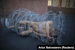 – К этой акции я подходил постепенно, на протяжении года. Череда законов, направленных на подавление гражданской активности, запугивание населения, неуклонно растущее число политзаключенных, законы об НКО, законы 18+, цензорские законы, активность Роскомнадзора, законы о пропаганде гомосексуализма – все это законы не против криминала, а против людей. Ну и последний закон об оскорблении чувств верующих. Поэтому я провел такую акцию. Человеческое тело голое, как туша, на нем ничего нет, вокруг него проволока, изобретенная для охраны домашнего скота. Эти законы, как проволока, удерживают людей в индивидуальных загонах: все преследования политических активистов, "узников 6 мая", государственные репрессии и есть метафора этого загона из колючей проволоки. Все это делается, чтобы превратить людей в надежно охраняемый безвольный скот, который может только потреблять, работать и размножаться.