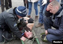 (я говорил с европейским наблюдателем на Майдане в Киеве. Без сомнений, применялись боевые патроны, много жертв. Необходима быстрая медицинская помощь).