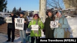 "Не хочу, чтобы наших ребятишек превращали в пушечное мясо, когда украинский народ борется за свою независимость и свободу" — сказала одна из участниц пикета, который прошел 2 марта в Омске.