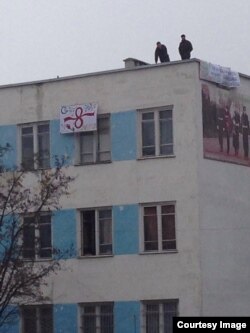 По всему Крыму продолжается блокада украинских воинских частей. Как сообщает корреспондент Радио Свобода в Симферополе, 7 марта была попытка захвата командного пункта тактической группы ПВО "Крым". Ворвались несколько десятков "казаков Аксенова", как их здесь называют по имени нового премьер-министра, и пытались взять пункт штурмом. Не удалось, солдаты и офицеры забаррикадировались в командном пункте. Подъехали журналисты. Нападающие избили их, в том числе корреспондента одного из главных телеканалов "Интер". Живущий в Севастополе координатор молодежного крыла партии "Удар" Дмитрий Белоцерковец опубликовал такой снимок: находящиеся в осаде украинские моряки поздравляют женщин с 8 Марта. С праздничным обращением выступил и командующий ВМС Украины контр-адмирал Сергей Гайдук.