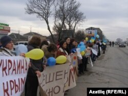 В Крыму 8 марта прошла акция протеста женщин против войны, за целостность Украины, против российского присутствия. Акцию организовали крымско-татарские женщины, к ним присоединились русские и украинки. Женщины требуют, чтобы российские войска покинули Крым, дали возможность самим разобраться с крымскими вопросами. Они стояли вдоль дорог с флагами, с разноцветными шариками, с детскими игрушками, антивоенными плакатами. Наш корреспондент в Крыму сообщает, что видел женщин с плакатами на всех дорогах, по которым проехал, а, по оценкам организаторов акции, в ней приняло участие несколько тысяч человек.