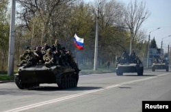 "Сегодня, 16 апреля, в Краматорск в Донецкой области вошли шесть единиц бронетехники Вооруженных сил Украины, которые действовали по плану антитеррористической операции. В центре города движение колонны заблокировали местные жители, среди которых были замечены представители российских диверсионно-террористических групп. В результате блокирования экстремисты захватили технику, и колонна направилась в сторону Славянска", - говорится в сообщении ведомства в среду.