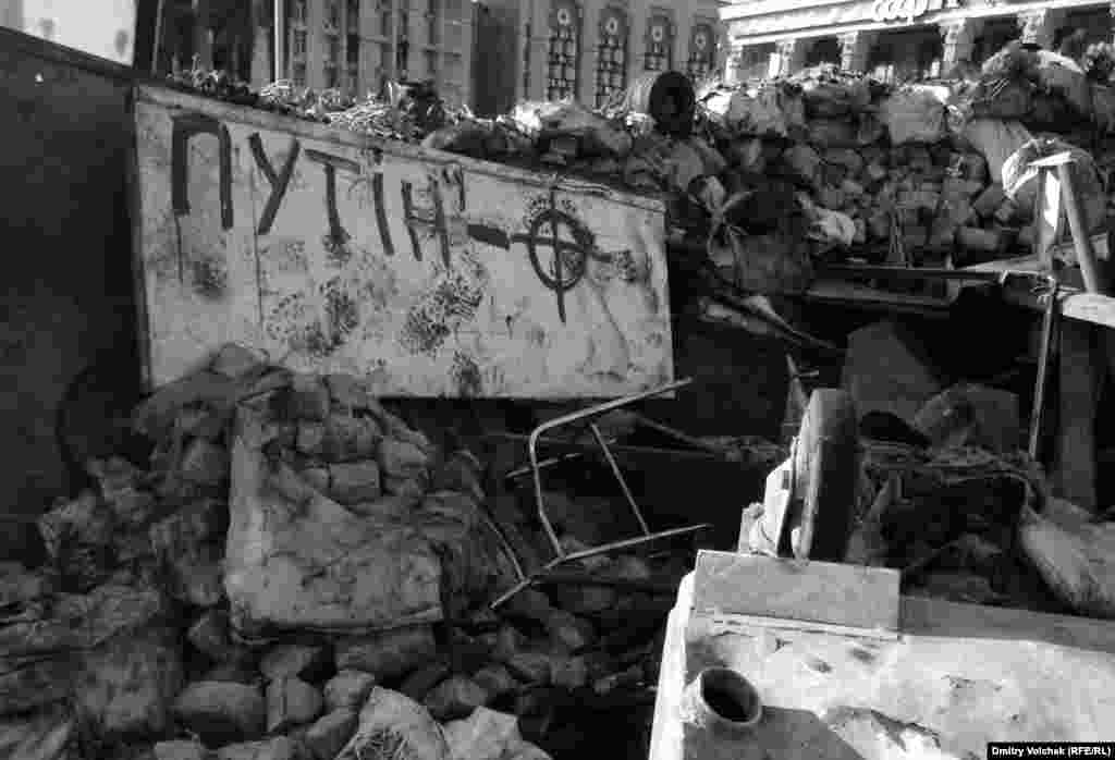 Виталий Кличко, избранный мэром Киева, и представители Майдана обсуждают будущее центра украинской столицы. Кличко предложил убрать баррикады, однако пока свернуты лишь две палатки на Крещатике. 28 мая было подписано заявление сообщества Майдана, в котором говорится, что "Майдан не расходится, пока не выполнены его требования: наказание преступников; люстрация; пакет законов для изменения системы власти; не установлен конституционный порядок в части общин; не наказаны виновные в массовых убийствах; не создана территориальная община Киева по самоуправлению". Эти фотографии я сделал в середине мая, до президентских выборов.